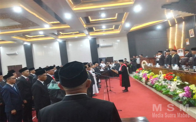 BeritaSembilan, Ketapang – Sebanyak 45 Anggota Dewan Perwakilan Rakyat Daerah (DPRD) Kabupaten Ketapang terpilih periode 2024 – 2029 resmi dan sah dilantik secara khidmat di ruang rapat paripurna DPRD Kabupaten Ketapang, senin (9/9/2024).