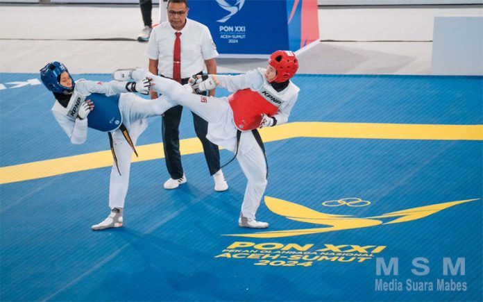 BeritaSembilan, Aceh – Atlet Taekwondo Polri Bripda Rizky Anugrah Prasetyo yang mewakili provinsi Jawa Timur berhasil merebut medali emas pada PON XXI Aceh Sumut.