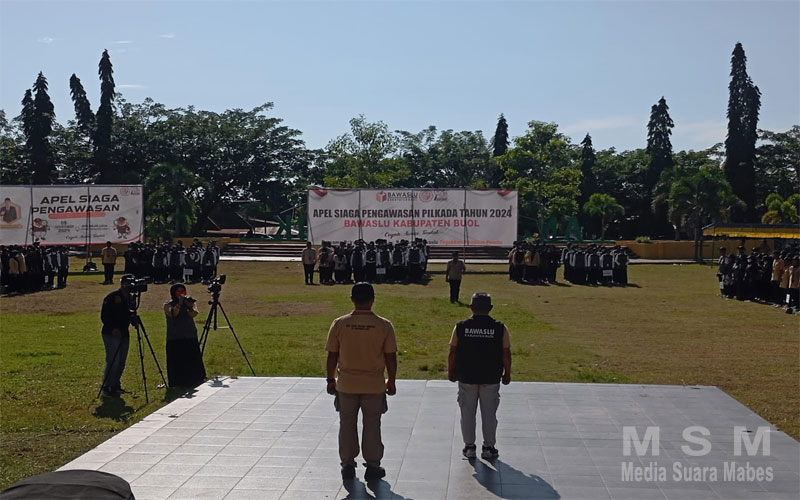 dalam Arahanya Ketua Bawaslu Buol Karianto Menyampaikan, sebanyak 550 petugas pengawas pemilu yang terdiri dari Pengawas Tempat Pemungutan Suara (PTPS), Pengawas Kelurahan dan Desa (PKD), Panitia Pengawas Kecamatan (Panwascam), yang berada 11 Kecamatan, di 276 TPS 108 Desa, 7 Kelurahan serta Bawaslu kabupaten Buol, ikut serta dalam Apel Siaga pengawasan Pemilihan Kepala daerah Pilkada 2024 di kabupaten Buol
