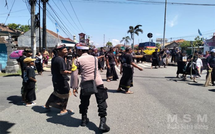 Kegiatan Pengamanan berlangsung pukul 10.00 Wita, sebagai wujud tanggung jawab Bhabinkamtibmas dalam memastikan kelancaran dan ketertiban acara adat, serta memberikan rasa aman kepada masyarakat. Dalam pelaksanaan tugas ini, Bhabinkamtibmas menerapkan prinsip Lugas, dengan berkomunikasi secara efektif dengan warga dan pecalang, guna menyerap informasi serta menyampaikan himbauan terkait situasi keamanan dan ketertiban masyarakat (Kamtibmas). Warga diingatkan untuk selalu waspada terhadap potensi gangguan keamanan, seperti pencurian yang belakangan ini meningkat di wilayah Jembrana.