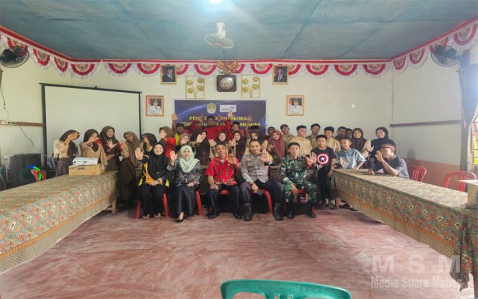 MediaSuaraMabes, Ketapang Kalbar – Bhabinkamtibmas Polsek Matan Hilir Selatan, Polres Ketapang, menghadiri kegiatan penyuluhan bahaya narkoba dan pencegahan pernikahan anak yang dilaksanakan di Gedung Balai Guna, Desa Pematang Gadung, Kecamatan Matan Hilir Selatan, pada (25/04).