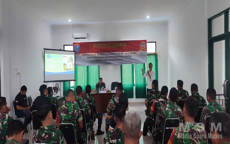 BeritaSembilan, Bengkayang – Komando Distrik Militer (Kodim) 1209/Bky mengelar penyuluhan Pencegahan Pemberantasan Penyalahgunaan dan Peredaran Gelap Narkoba (P4GN). Penyalahgunaan Narkoba dapat menyerang siapa saja, termasuk prajurit TNI. Oleh karena itu sebelum terlalu jauh kita harus melakukan upaya pencegahan untuk melindungi prajurit dari penyalahgunaan Narkoba.