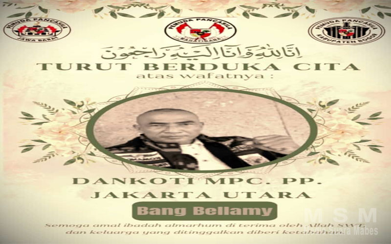 BeritaSembilan, Jakarta – Inalillahi wa innailaihi rojiun, Pada hari ini Jumat tanggal 20 September 2024 pukul 07.30 wib telah meninggal dunia sahabat kita Dan Koti MPC. PP jakarta utara bung Nur Bellamy ( Abel ) di rumah sakit Cipto Mangunkusumo Beliau meninggalkan istri dan satu orang putra ( almarhum).
