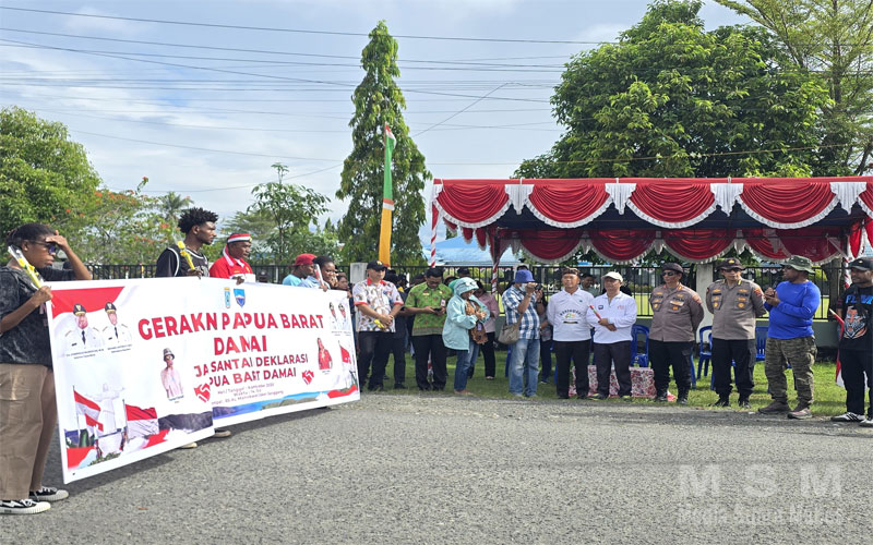 MediaSuaraMabes, Manokwari Papua Barat – Pemerintah Provinsi Papua Barat bersama berbagai elemen masyarakat, tokoh pemuda, mahasiswa, tokoh agama, serta Forkopimda melaksanakan kegiatan Jalan Santai dan Deklarasi Papua Barat Damai, bertempat di Kabupaten Manokwari. Kegiatan ini berlangsung mulai pukul 14.00 hingga 17.00 WIT dengan diikuti sekitar 500 peserta. Kamis 04/09/2025.