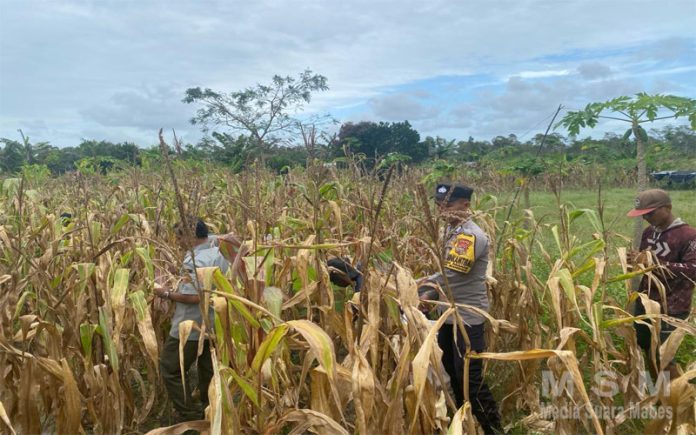 MediaSuaraMabes, Babel – Dalam rangka memperkuat ketahanan pangan nasional, Bhabinkamtibmas Desa Padang Polsek Manggar melaksanakan kegiatan panen jagung bersama Kelompok Tani Budi Karya di lahan Ketahanan Pangan Desa Padang, Kecamatan Manggar, Kabupaten Belitung Timur pada Senin (02/02/2026)