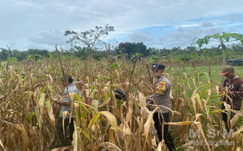 Dukung Ketahanan Pangan, Bhabinkamtibmas Desa Padang Bersama Kelompok Tani Budi Karya Laksanakan Panen Jagung