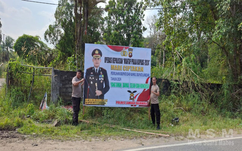 BeritaSembilan, Menjalin Landak Kalbar ~ Pada hari Rabu, tanggal 04 September 2024, Kapolsek Menjalin, AKP Roberd S. S. PdK bersama anggota Polsek Menjalin melaksanakan pemasangan baleho himbauan dalam rangka Operasi Mantap Praja Kapuas 2024. Pelaksanaan pemasangan tersebut dilakukan di dua lokasi strategis, yaitu di Simpang Raba Dusun Menjalin Hulu Desa Menjalin, Kabupaten Landak, dan di depan Mako Polsek Menjalin. Lokasi-lokasi ini dipilih agar masyarakat Menjalin dapat dengan mudah melihat dan memahami himbauan yang disampaikan.