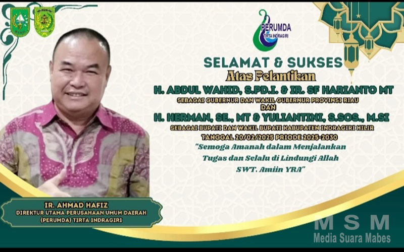 Sejalan dengan momentum bersejarah ini, Ir. Ahmad Hafiz, Direktur Utama Perusahaan Umum Daerah (Perumda) Tirta Indragiri, menyampaikan ucapan selamat dan doa kepada para pemimpin yang baru dilantik. Dalam sebuah ucapan resmi, beliau berharap agar para pemimpin yang baru dapat menjalankan amanah dengan baik dan selalu dalam lindungan Allah SWT.