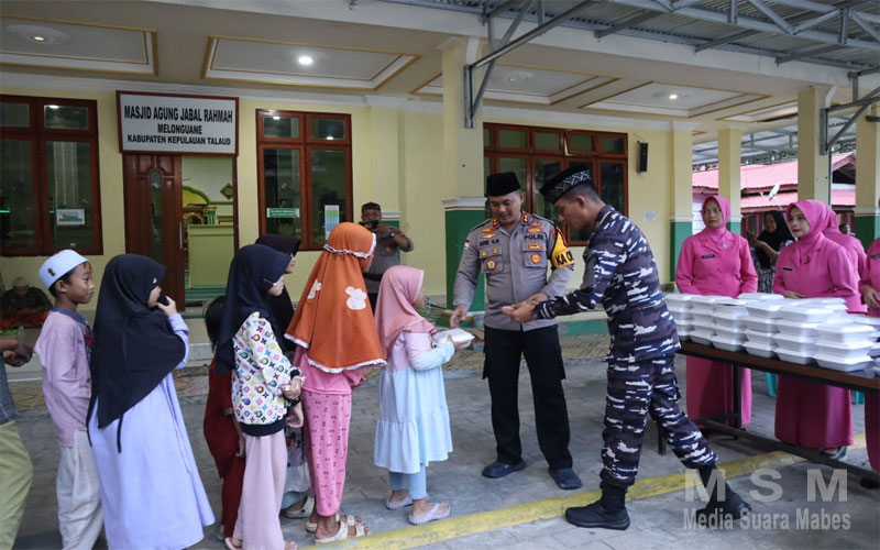 BeritaSembilan (Jaringan MSM), Talaud – Pimpinan Polri dan TNI di Kabupaten Kepulauan Talaud menggelar buka puasa bersama ( bukber) dan sholat magrib bersama jamaah Masjid Jabbal Rahmah Melonguane, Senin 10/3/2025) sore hingga menjelang malam.