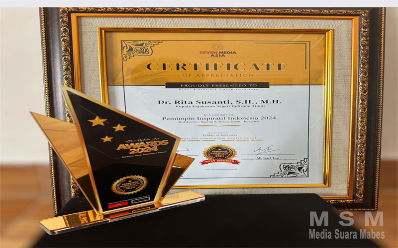 Kepala Kejaksaan Negeri Beltim Raih Penghargaan Pemimpin Inspiratif 2024