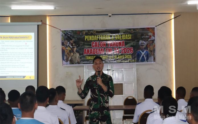MediaSuaraMabes, Manokwari – Ajendam XVIII/Kasuari hadirkan semangat pengabdian langsung ke ruang-ruang belajar melalui kegiatan Sosialisasi Penerimaan Catar Akademi TNI TA 2026. Kegiatan ini digelar di SMA N Taruna Kasuari Nusantara Papua Barat dan SMA N 2 Manokwari, membuka cakrawala baru bagi para siswa-siswi tentang jalan pengabdian sebagai perwira TNI, pada Rabu (8/4/2026).