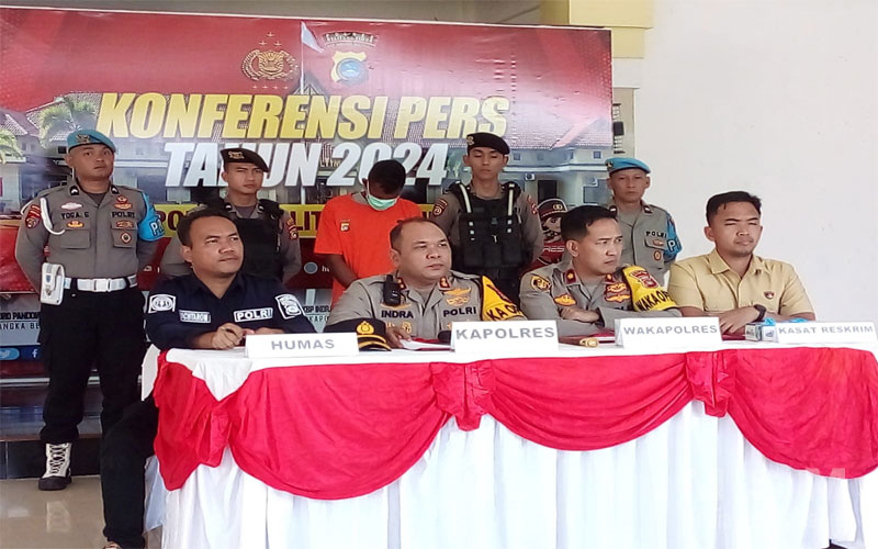 BeritaSembilan (MSM Network), Babel – Kapolres Beltim,AKBP Indra Feri Dalimunthe.,SH.,SIK.,MH.,pimpin langsung Konferensi Pers terkait kasus pembunuhan di Wilkum Polres Beltim, pada hari kamis,14/11/2024.Dimana dalam Konferensi Pers Kapolres Beltim di dampingi Wakapolres Beltim,Kasat Reskrim dan Kasubsi PIDM si Humas Polres Beltim di Joglo Graha Patritama Polres Beltim.