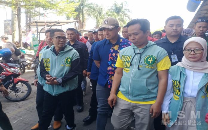 BeritaSembilan, Lembang Jabar – Pasangan Calon (Paslon) Bupati dan Wakil Bupati Kabupaten Bandung Barat, Edi Rusyandi dan Ujang Asy’ari (EDUN) melaksanakan kegiatan kunjungan ke pasar Panorama Lembang. Kegiatan tersebut selain bersilaturahmi kepada warga masyarakat juga agar bisa lebih akrab serta mempererat hubungan dan lebih dekat dengan yang namanya warga masyarakat sekaligus di EDUNKEUN.30-09-2024