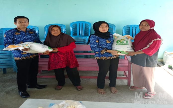 Kepala Pekon Jogyakarta selatan Mursidi yang diwakili oleh aparatur pekon untuk mengawali dan membagikan bantuan beras kepada masyarakat penerima KPM dari program ketahanan pangan nasional pemerintah di Pekon Jogyakarta selatan.