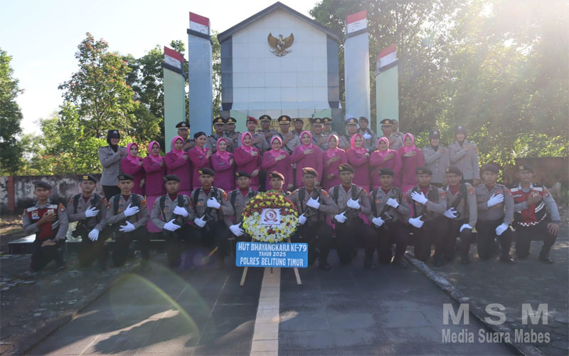 MediaSuaraMabes, Babel – Wakapolres Belitung Timur Kompol Deddy Nuary, SH, SIK menjadi Inspektur Upacara Ziarah dalam rangka memperingati HUT Bhayangkara ke-79 di Taman Makam Pahlawan ‘Murni’ Desa Mekar Jaya Kecamatan Manggar Kabupaten Belitung Timur, Senin (23/06/2025).
