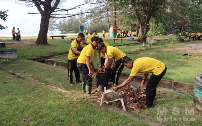 MediaSuaraMabes, Babel – Personel Polres Belitung Timur menunjukkan kepedulian nyata terhadap lingkungan dengan menggelar aksi bersih-bersih di Pantai Nyiur Melambai Desa Lalang, Kecamatan Manggar, Jumat (06/02/2026).