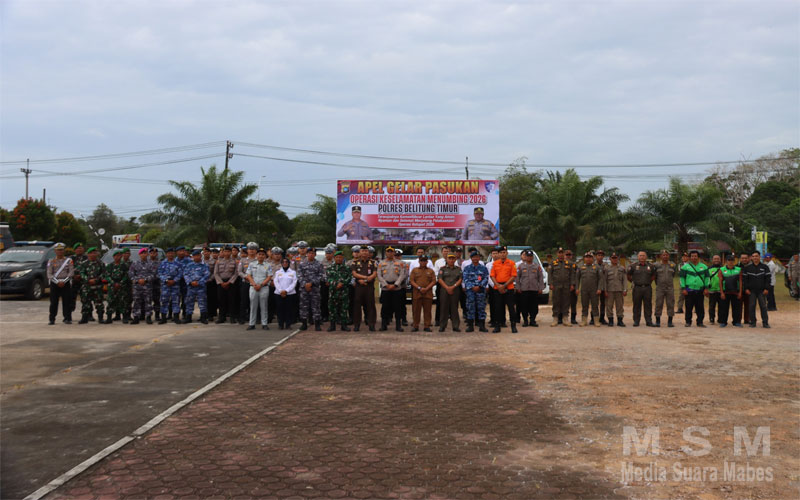 MediaSuaraMabes, Babel – Menjelang datangnya bulan suci Ramadhan dan Operasi Ketupat 2026, Kepolisian Resor Belitung Timur melaksanakan Apel Gelar Pasukan Operasi Keselamatan Menumbing Tahun 2026. Kegiatan ini berlangsungdi Halaman Mapolres Belitung Timur pada Senin (02/02/2026).