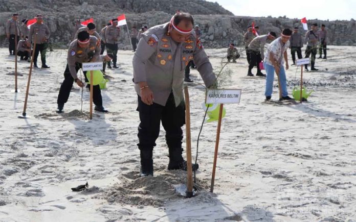 Polres Beltim Gelar Penanaman Pohon, Wujud Kepedulian Lingkungan Di HUT RI Ke-80