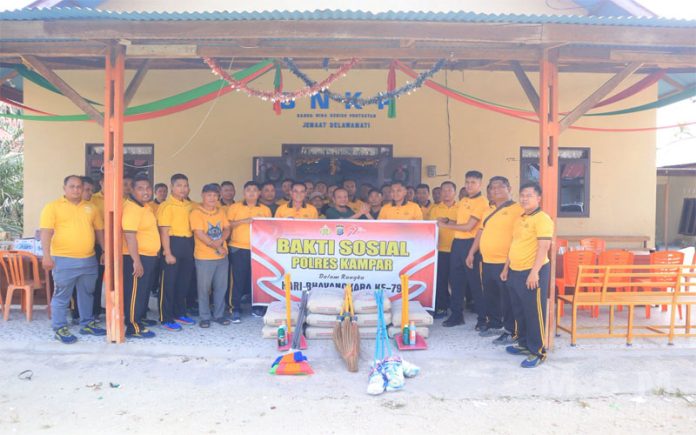 Kegiatan Baksos ini dipimpin langsung oleh Wakapolres Kampar, Kompol Andi Cakra Putra, SIK, MH, didampingi Kabag Log Polres Kampar, Kompol M. Simanungkalit, SH, MH, serta diikuti oleh para perwira dan personel Polres Kampar sebanyak kurang lebih 25 orang.