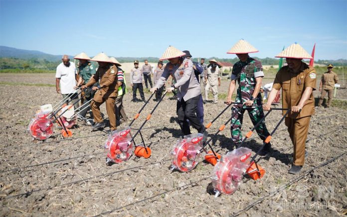 Polres Pidie dan Kelompok Tani Sabena Geuleudieng Padang Tiji Tanam Jagung di Lahan 11 Hektare