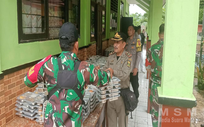 Polsek Sagaranten Dan Koramil 0622/Sagaranten Dampingi Penyaluran Makan Gratis Siwa Di Sagaranten