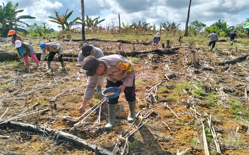 MediaSuaraMabes, Ketapang Kalbar – Dalam upaya mendukung program ketahanan pangan nasional, Polsek Sandai Polres Ketapang melaksanakan kegiatan penanaman jagung perdana bersama Kelompok Tani Karya Bakti di Dusun Sumber Rejo, Kecamatan Sandai, Kabupaten Ketapang, pada (02/05)
