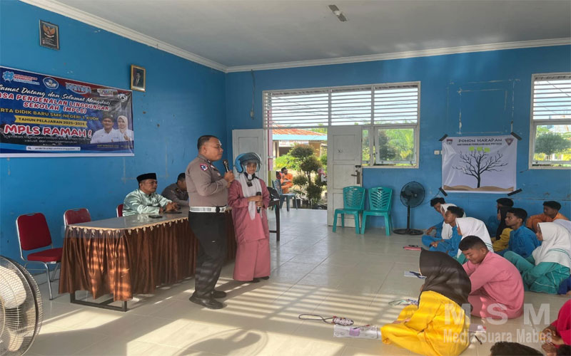 MediaSuaraMabes, Kampar – Dalam rangka meningkatkan kesadaran dan kedisiplinan berlalu lintas di kalangan generasi muda, Satuan Lalu Lintas (Satlantas) dan Satuan Binmas (Satbinmas) Polres Kampar bersama-sama melaksanakan kegiatan “Police Goes to School” (PGTS) di SMK Negeri 1 Kuok. Kegiatan yang dilakukan pada Jumat (11/7/2025) pukul 08.00 WIB ini merupakan bagian dari program Masa Pengenalan Lingkungan Sekolah (MPLS) tahun ajaran 2025/2026.