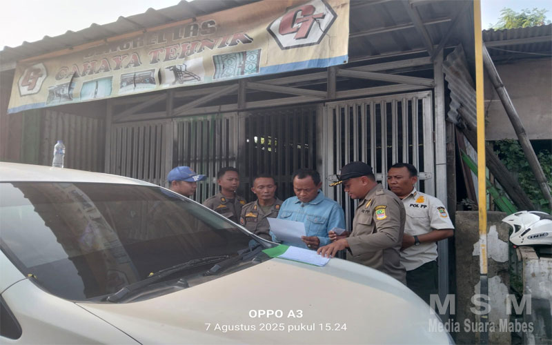 MediaSuaraMabes, Tarumajaya – Satuan Polisi Pamong Praja (Satpol PP) Kecamatan Tarumajaya melakukan kegiatan pendataan terhadap sejumlah bangunan liar yang berada di wilayah Desa Pantai Makmur, tepatnya di RT 02 RW 07, pada hari ini, Kamis (07/08/2025).