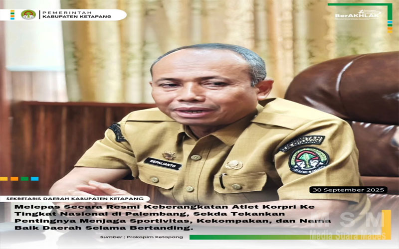 MediaSuaraMabes, Ketapang – Sekretaris Daerah Kabupaten Ketapang secara resmi melepas keberangkatan atlet Korps Pegawai Republik Indonesia (Korpri) Kabupaten Ketapang yang akan mengikuti ajang olahraga Korpri tingkat nasional di Palembang.