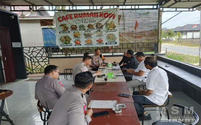 BeritaSembilan, Landak Kalbar ~ Pada hari Rabu, 4 September 2024, Kapolres Landak AKBP Siwo Dwi Nugroho, S.H., S.I.K beserta Pejabat Utama (PJU) Polres Landak melaksanakan kegiatan Cooling System Polres Landak yang bertempat di Cafe Rumah Kopi, Jalan Ilong, Desa Raja, Kecamatan Ngabang, Kabupaten Landak. Kegiatan ini juga dihadiri oleh penyelenggara Pilkada, yaitu Komisioner KPU Kabupaten Landak Musa, S.Pd dan Ketua Bawaslu Kabupaten Landak Barto Agato Dirgo, S.H.