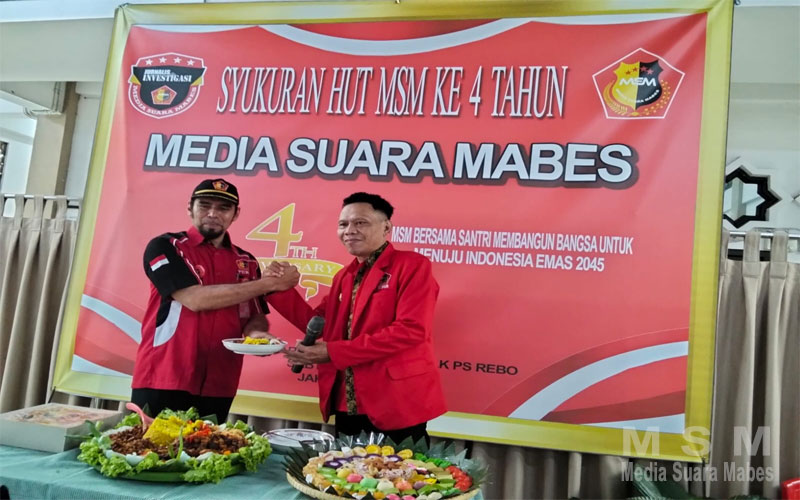 MediaSuaraMabes, Jakarta – Media Suara Mabes (MSM) memperingati hari ulang tahunnya yang ke-4 dengan menggelar acara syukuran bertema “MSM Bersama Santri Membangun Bangsa Menuju Indonesia Emas 2045″, pada Sabtu (19/07), bertempat di Masjid Al Barokah Rusunawa BLK, Pasar Rebo, Jakarta Timur.