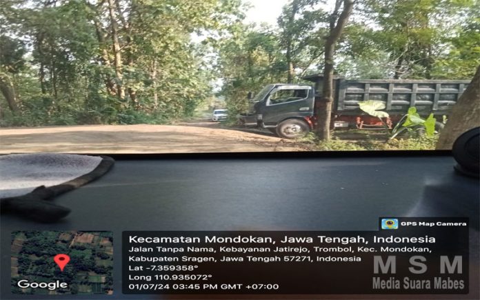 Terlihat sangat jelas maraknya Galian C di wilayah Kec. Mondokan Kab. Sragen, yang Diduga tidak memiliki ijin resmi tapi masih bebas beroperasi yang seakan-akan kebal oleh hukum. Salah satu tambang galian C di daerah Trombol Kec. Mondokan Kab. Sragen yang Diduga tidak mengantongi ijin resmi/ilegal yang masih bebas beroperasi secara terang-terangan. Terlihat dalam pantauan awak media saat kendaraan Dum truk keluar masuk dari tambang ilegal tersebut.