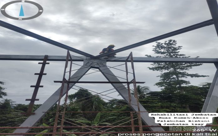 MediaSuaraMabes, Manokwari – Balai Palaksanaan Jalan Nasional (BPJN) Papua Barat melalui Satuan Kerja Pelaksanaan Jalan Nasioonal (PJN) Wilayah IV Bintuni melaksanakan Item pekerjaan rehabilitasi jembatan ruas Mameh akses Pelabuhan Bintuni.