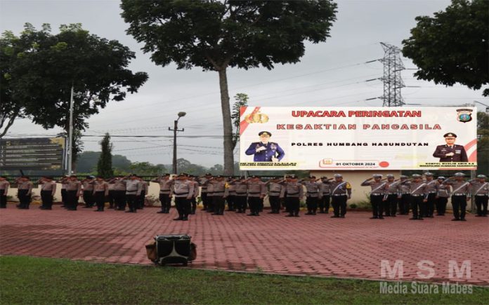 Kapolres Humbahas AKBP HARY ARDIANTO, S.H., S.I.K, M.H sebagai Inspektur Upacara diikuti oleh Pejabat Utama (PJU) Polres Humbahas dan seluruh jajarannya.