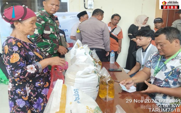 Babinsa Desa Setiamulya, Sertu Parmadi bersama Serda Kurniawan dari Koramil 02 Tarumajaya turut hadir memastikan proses pembagian bantuan berjalan sesuai prosedur. Selain itu, Bhabinkamtibmas Desa Setiamulya Aipda Arif Pramono juga melakukan pengawasan di lokasi sebagai upaya menjaga ketertiban dan memberikan rasa aman kepada warga penerima manfaat.