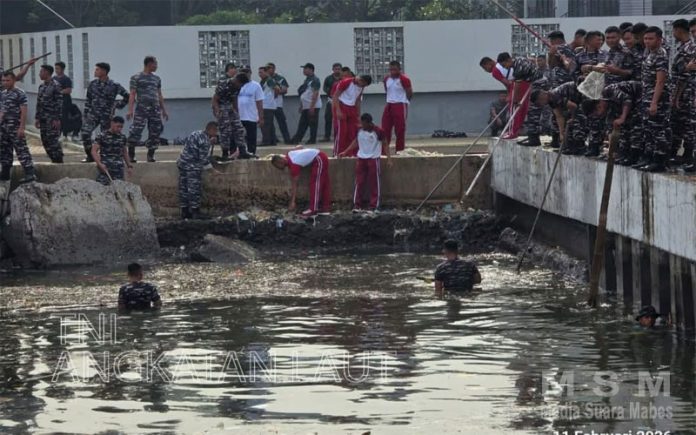 MediaSuaraMabes, Jakarta – Komitmen TNI Angkatan Laut dalam menjaga kelestarian lingkungan maritim kembali diwujudkan melalui aksi nyata di lapangan. Prajurit jajaran Komando Armada RI bersama Komando Daerah TNI Angkatan Laut (Kodaeral) III bersinergi dengan berbagai instansi maritim melaksanakan aksi bersih-bersih kawasan Dermaga Pondok Dayung, Tanjung Priok, Jakarta Utara, Rabu (11/2).